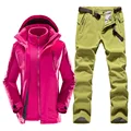 Women Outdoor Ski Suit Set Winter Hiking Skiing Waterproof Jackets Fleece Warm Fishing Trekking Ski jacket +Pant Multicolor